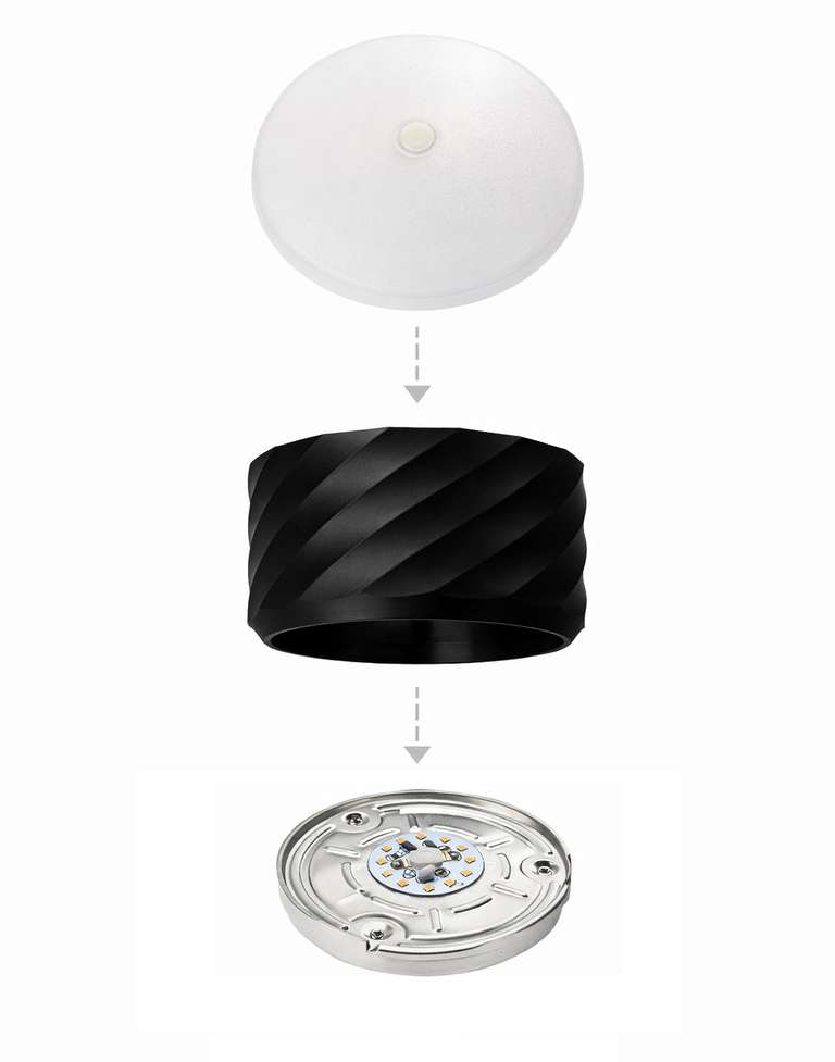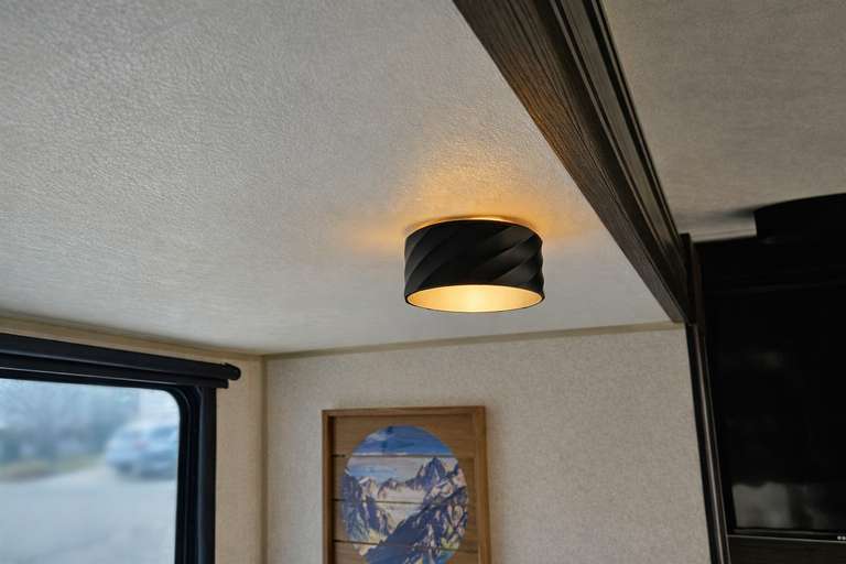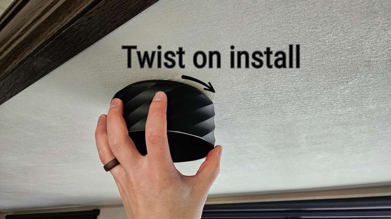 "Twist" RV Shades These "TWIST" lamp shades are designed specifically for RV 4.5 inch round LED lights. Built thicker for enhanced light blocking with a built in design to showcase a clean, modern look.