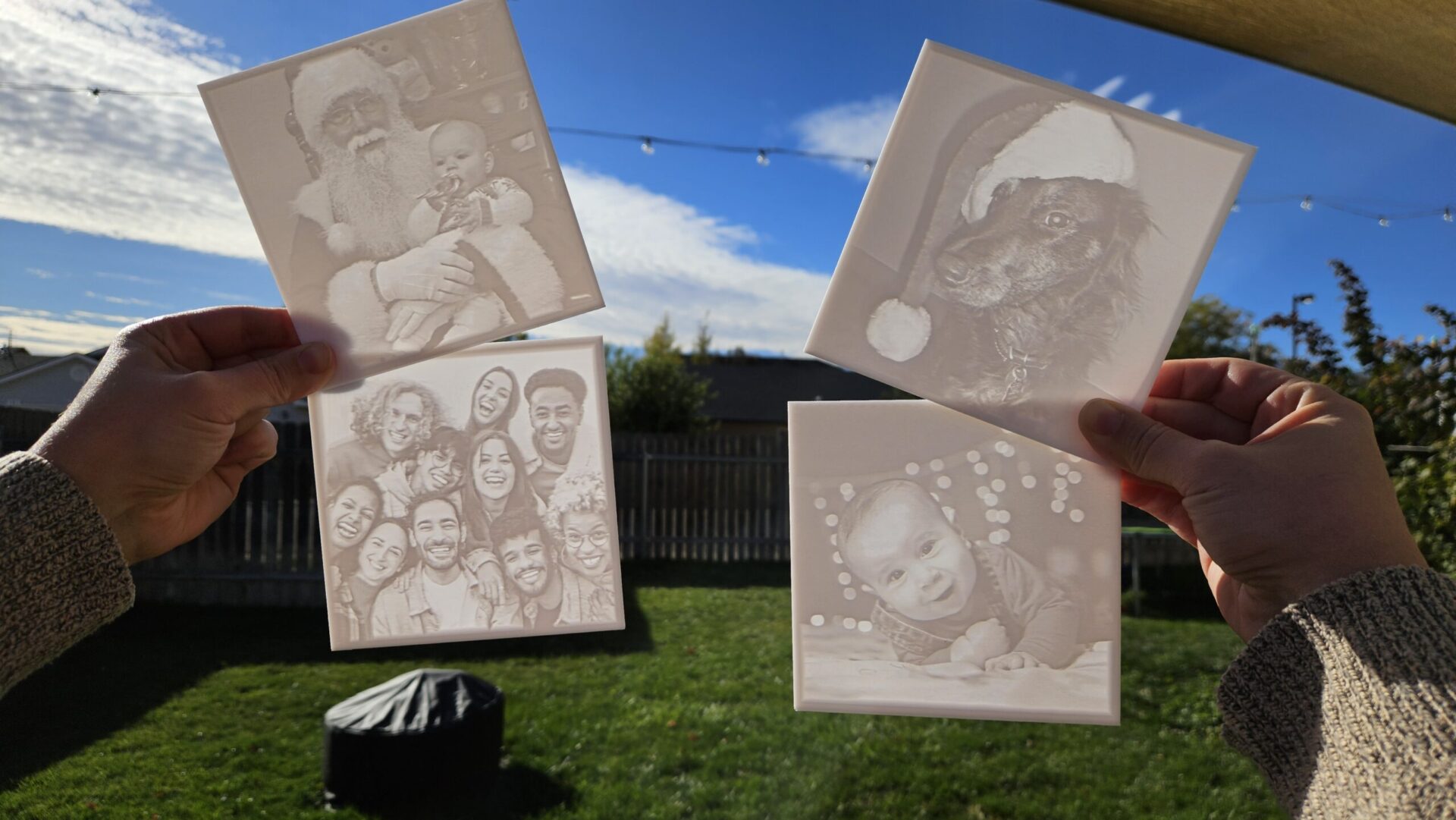 After you place an order, send 4 high quality photos to layersforlifellc@gmail.com with your name and order number in the subject line of the email. We will transform your photos into high quality lithophanes! [High quality images will produce the best lithophanes. Please note that any squinting/lines/etc may be exaggerated in the design process. Photos will not come through in an exact 1 to 1 representation but will amaze you with their beauty. We will contact you in the event we need to replace a photo due to quality/sizing issues.]