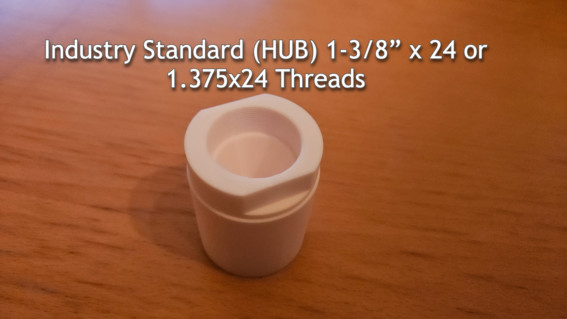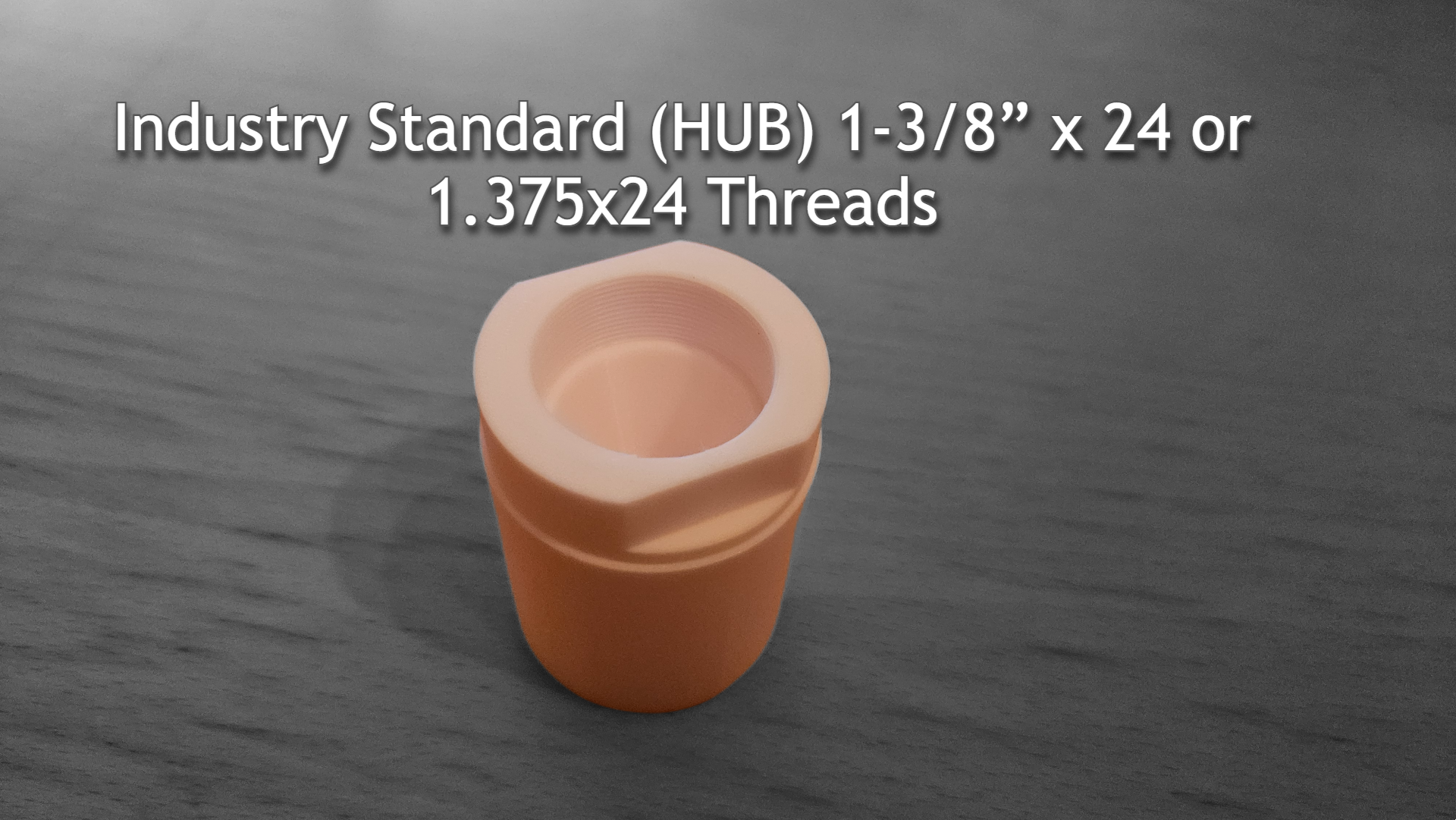 Designed for 1.375×24 threading or 1 3/16″-24 (1.375″ x 24) thread pitch – Industry Standard HUB 1-3/8” x 24